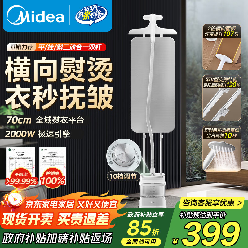 包邮 美的(Midea)【双杆TOP1】挂烫机家用立式熨烫机/便携手持蒸汽电熨斗机/大功率服装店熨衣机/政府补贴YGD20P5